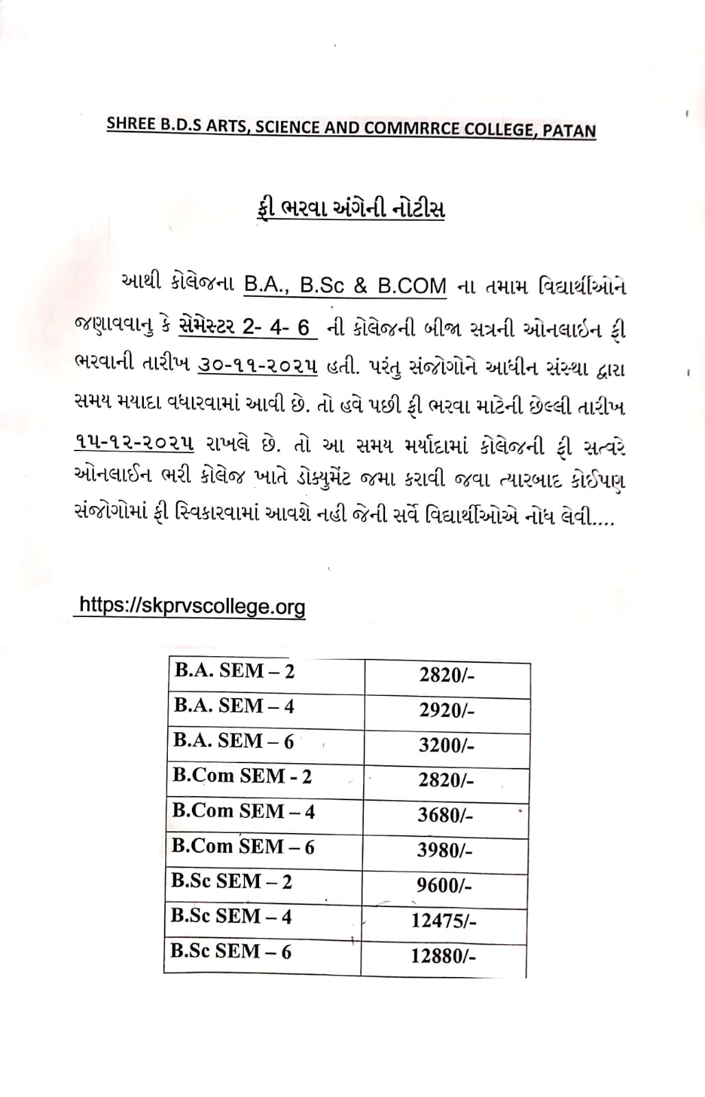 બીજા સત્રની ફી ભરવા અંગે નોટીસ